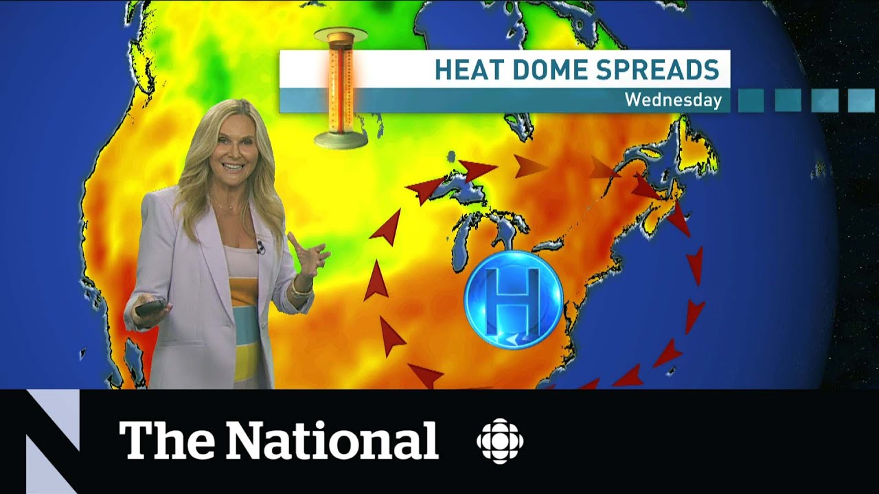 CBC News meteorologist Colette Kennedy outlines the heat dome that is setting in across eastern North America. Thermometre …