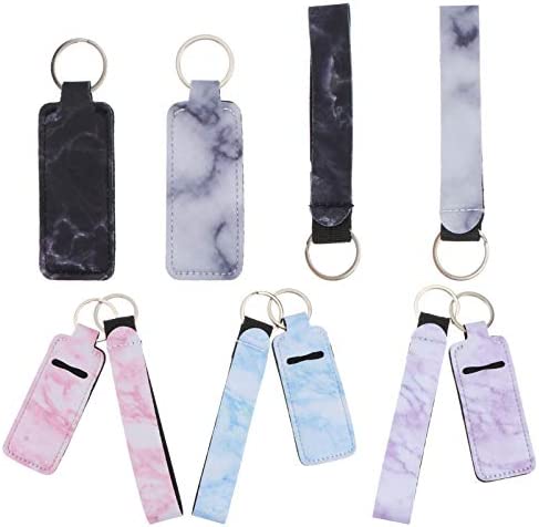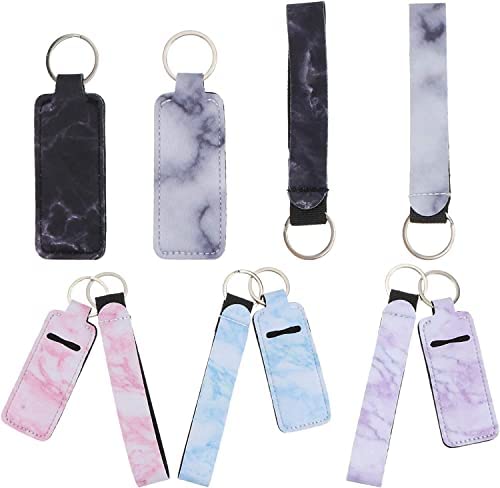 10Pcs Chapstick Holder Keychains Neoprene Lipstick Holder Lip Balm Holster Sleeve Pouch with Wristlet Lanyard for Outdoor Travel Accessories