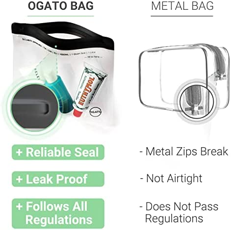???? Lekvrij en hersluitbaar pakket van 3: geen dunne metalen ritsen meer! Elke Ogato TSA goedgekeurde doorzichtige toilettas heeft drievoudig verzegelde naden en een volledig waterdichte ritssluiting om te voorkomen dat shampoos, crèmes en andere vloeistoffen in uw handbagage of draagtas terechtkomen.