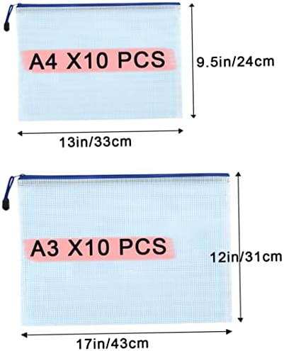 Pakket inbegrepen: Elk pakket bevat 10 A4 -maat (13 x 9,5 inch) en 10 A3 Size (17 x 12 inch) Bestandszakken Zipper -bestandszakken.