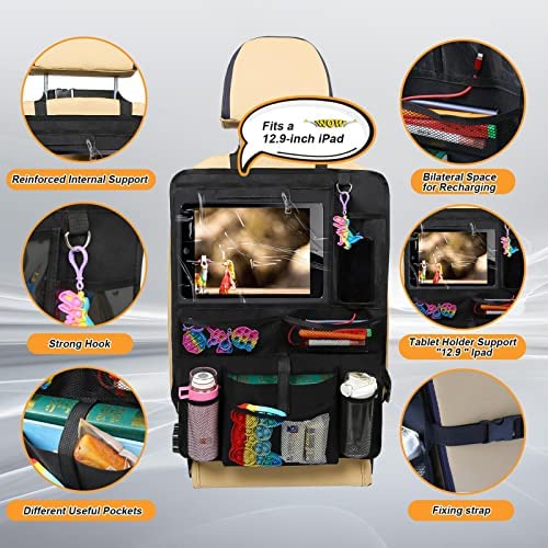 Backseat Car Organizer Seat Back Car Storage Organizers, Clear Screen Tablet Holder Auto Phone Pocket Pouch, Storage Bag for Kids Travel Accessories Bottles Toys Books Wushun