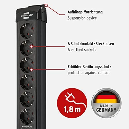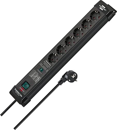 Brennenstuhl Premium-Line Stekkerdoos met overspanningsbeveiliging tot 26.000A (Stekkerdoos 6-voudig met 1,8m kabel en met schakelaar, monteerbaar, Made in Germany) zwart