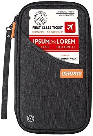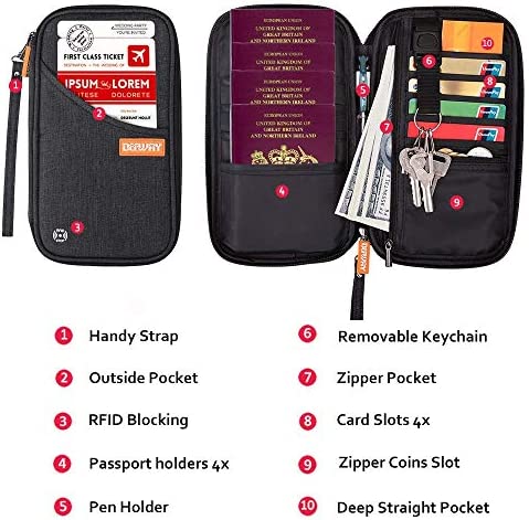 DEFWAY reispas tas paspoorthoes ID-tas – familie reisportefeuille met schouderband organizer creditcard vliegticket etui, RFID Passport Holder voor dames heren