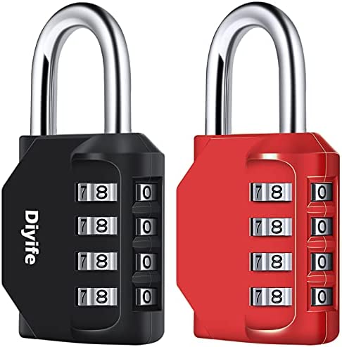Diyife 4-Cijferig Combinatieslot, 2 Stuks Cijferslot Hangslot, Weerbestendig Metaal & Geplateerd Staal, Gecombineerde Hangsloten voor School, Gym Locker, Kluisje(Zwart & Rood)