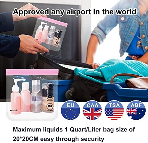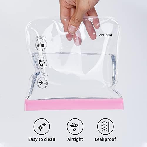 ECOHUB Transparante Toilettas 20x20cm Luchthavenbeveiliging vloeistoffen 1L Milieuvriendelijke Geschenken Waterdichte Make-uptassen Reistas Cosmetica TSA-goedgekeurde voor heren Dames 2-Pcs(Roze)