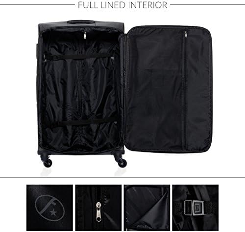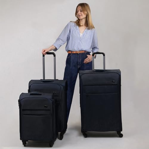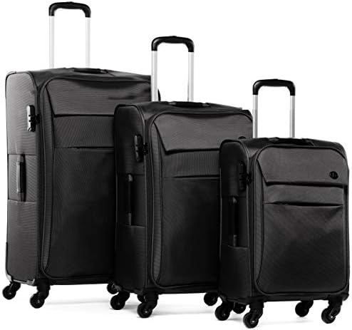 Ansonsten sehen die Koffer gut aus, sie “schimmern” etwas (die Farbe ist daher auf dem Bild nur auf dem mittleren (kleinen) Koffer so blau wie sie wirklich aussehen), machen einen hochwertigen Eindruck, man kann sie mit Leichtigkeit umherrollen und an sich sind die Koffer auch relativ leicht bis mittel (gibt aber durchaus leichtere, das wäre dann aber auch der einzige “Kritikpunkt”, welcher zu dem Preis nicht wirklich angekreidet werden kann). Die Koffer sind recht stabil und das Innere wird recht gut geschützt, so gut man es eben von Softcover Koffern erwarten kann. Es gibt viel Stauraum und durch die 3 Größen ist man auch flexibel was den Stauraum betrifft. Außerdem gibt es ein paar kleine Fächer und zwei Netzfächer. Zusätzlich noch das Sicherheitsschloss an jedem Koffer, um die Reißverschlüsse zu fixieren und mit einem Code zu schützen – mehr braucht man eigentlich nicht bei einem Koffer. Muss aber dazu sagen, dass ich nicht genau weiß, ob die Flughafen Security irgendwelche Probleme macht wegen dem Schloss, da ich nicht in Urlaub fliege.