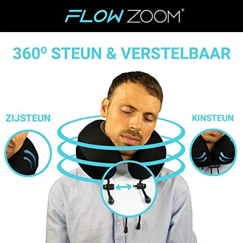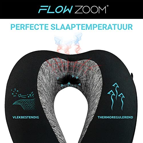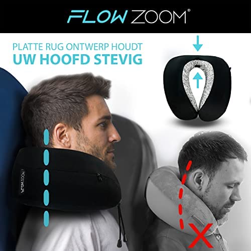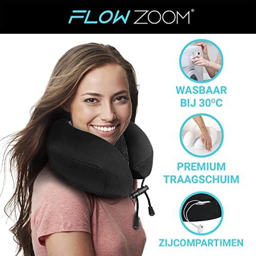 FLOWZOOM® DREAM Memory Foam Reiskussen | Vliegtuigkussen | Nekkussen voor Reizen | Auto Nekkussen | Travel Pillow Memory Foam | Volwassenen, Zwart