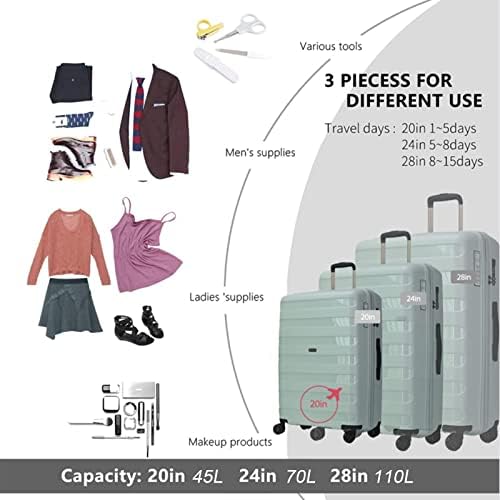 GinzaTravel Uitbreidbare koffer met 4 dubbele spinner wielen en TSA-slot, lichte harde schaal PP-materiaal, reis-carry-on cabine bagage, lichtgroen, Groß:28IN(76*51*29CM), koffer