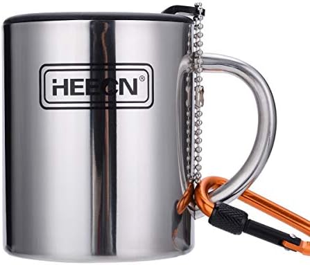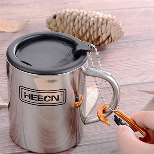HEECN Kampeerbeker met Deksel en Karabijnhaak Roestvrijstalen Thermische mok Buitenbeker Dubbelwandige Koffiemok Isolerende mok BPA-vrij HESS-038BBK 260ml met Roterend Drinkdeksel