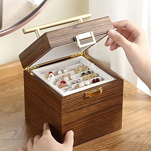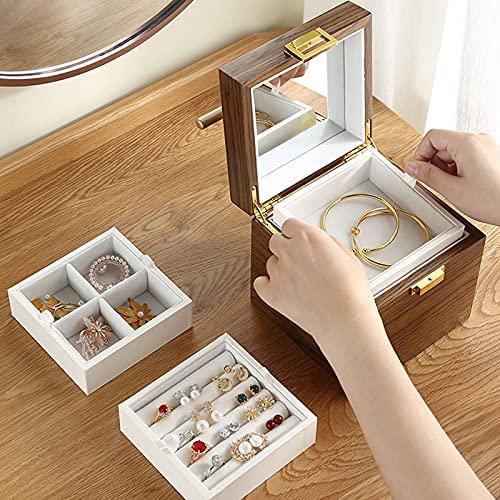 Jewelry Boxes Solid Wooden Jewelry Box for Women Jewelry Armoire Ring Necklacel Gift Storage Box Travel Organizer with Mirror Walnut Wood Color Home Accessories