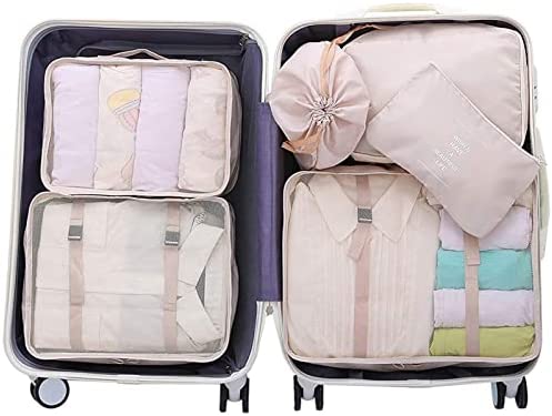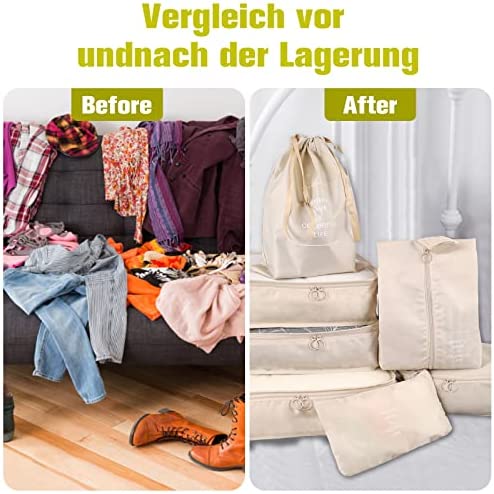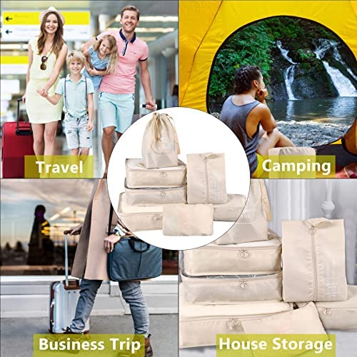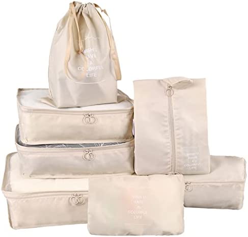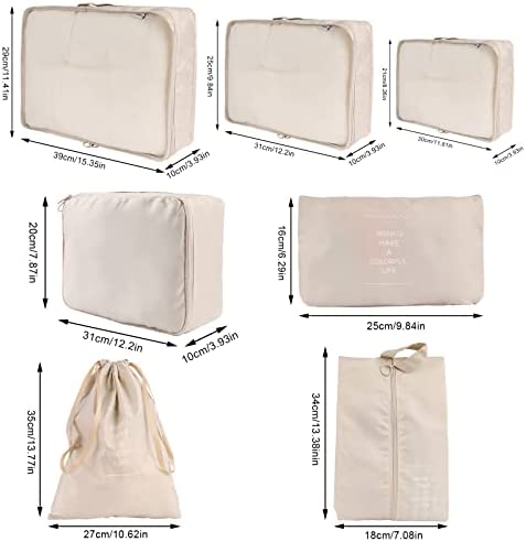 Koffer-organizerset, packing cubes voor koffer, pakzakken voor kleding, paktassen, kledingtassen, schoenenzak, reisorganizers, cosmetica, reisorganizers, 7-delig, beige