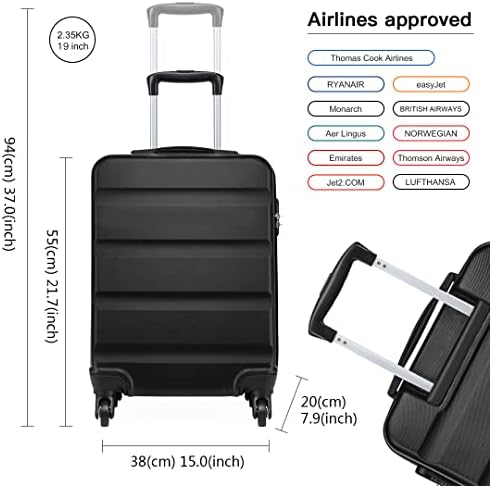 Kono 19″ cabine handbagage duurzame lichtgewicht ABS koffer 55x38x20cm, 33L met 4 stille wielen
