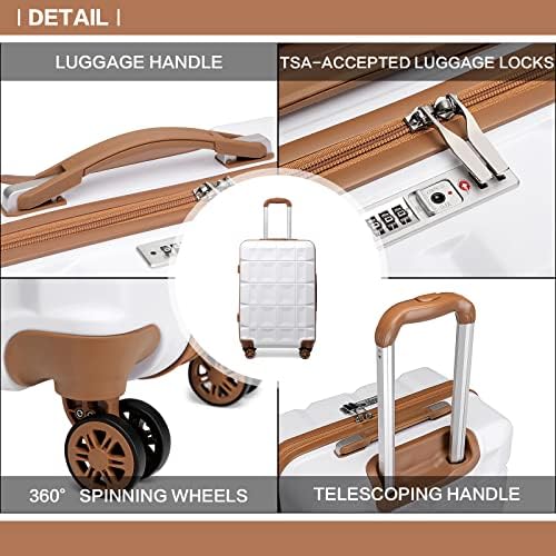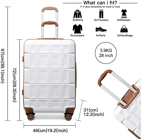 Kono Carry On Cabine Bagage Lichtgewicht ABS Hard Shell Travel Koffer Trolley met TSA Lock en 4 Spinner Wielen, Wit, 28″, onbezorgd