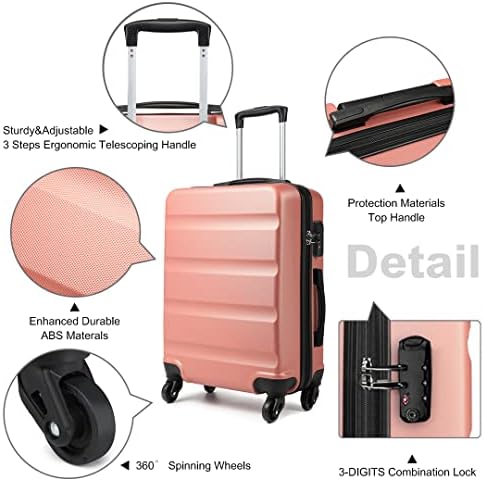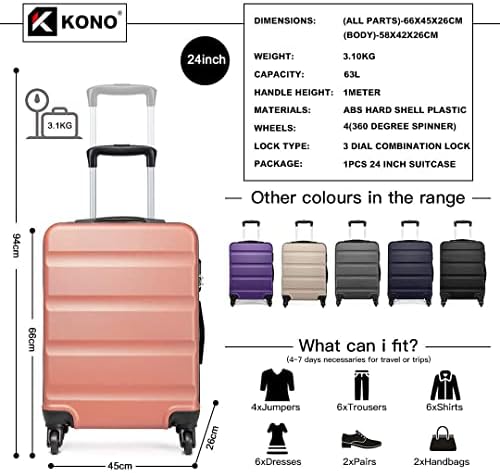 Kono Medium 24” Hard Shell Koffer Lichtgewicht Handbagage Reistrolley Koffer met 4 Wielen en Draaiknop Combinatieslot (Naakt)