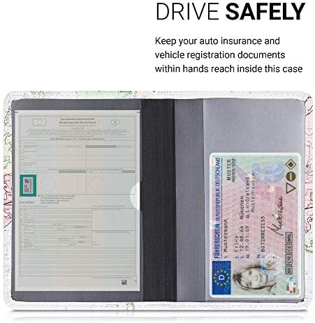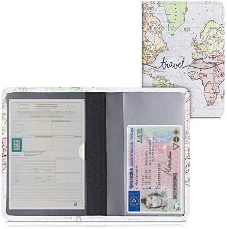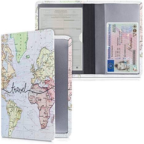 kwmobile hoes voor kentekenbewijs en rijbewijs – Omslag met pasjeshouder in zwart/meerkleurig – Imitatieleer – Travel Wereldkaart