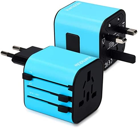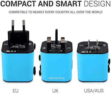 kwmobile wereldstekker universeel – Reisstekker geschikt voor de hele wereld – Europa, Verenigde Staten, Afrika, Australië en Azië – Blauw