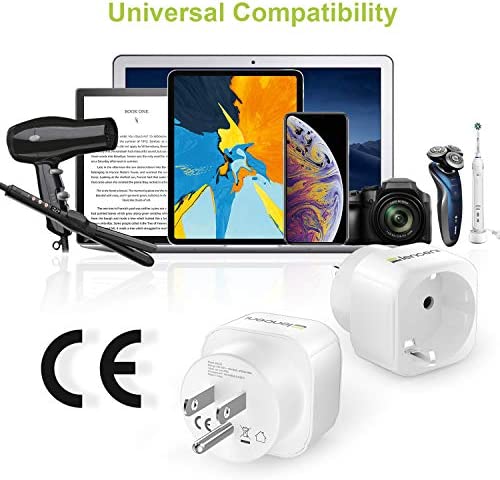 Perfecte aanpassing: 2-polige Europese Schuko op 3-polige US. Perfect voor smartphones, scheerapparaten, powerbank, iPhone en meer. Ook geschikt voor de sterkste apparaten zoals laptops of haardrogers.