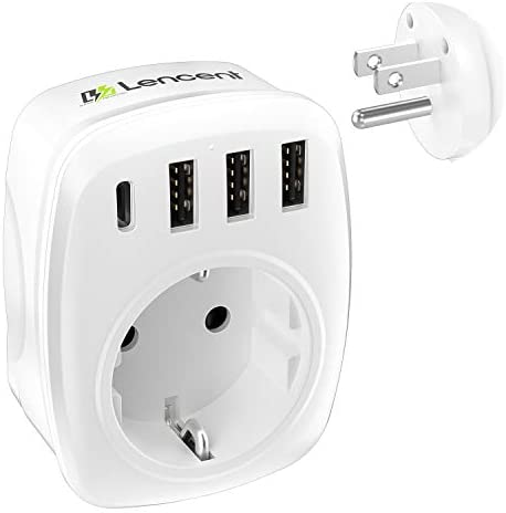 LENCENT Reisadapter netadapter DE EU stekker met 3 USB-poorten + 1 type C poort voor de VS Amerika Canada Mexico stopcontact stopcontact stopcontact adapter wit