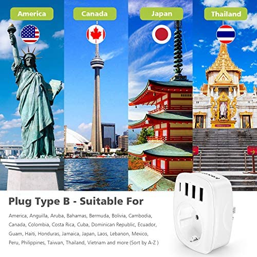 4. Met deze reisadapter kun je je smartphone, scheerapparaat, powerbank, iPhone en ook de krachtigste apparaten zoals laptops en haardrogers uit Duitsland naar Amerika reizen opladen. Perfecte reisbenodigdheden voor reizigers en zakenman.