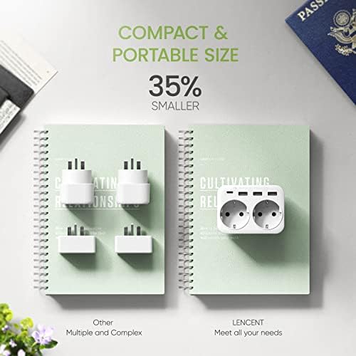 【Compact ontwerp en betrouwbare pasvorm】Dankzij de afmetingen van 9,03*4,07*6,36 cm is deze reisadapter compact en draagbaar. Sluit de adapter gewoon aan tussen het stopcontact en uw apparaat. Deze reisadapter is uiterst compact en zal niet snel van de muur vallen.