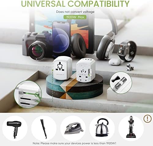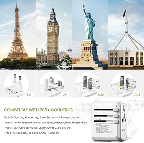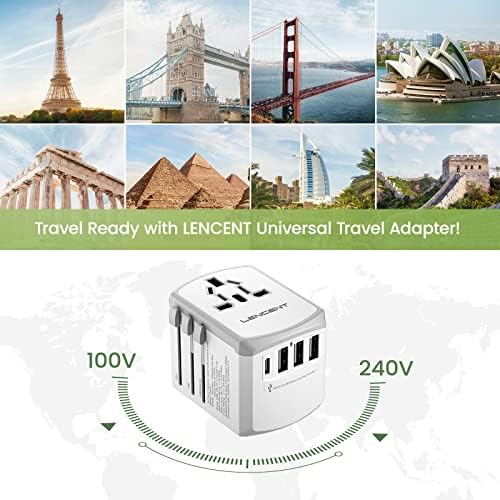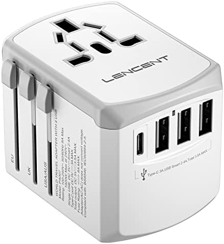 LENCENT Travel Adapter Reisstekker Wereldwijd met 3 USB en 1 Type-C aansluitingen en AC-stopcontact Adapter Internationale Reisadapter voor USA UK Australië meer dan 200 landen, Wit