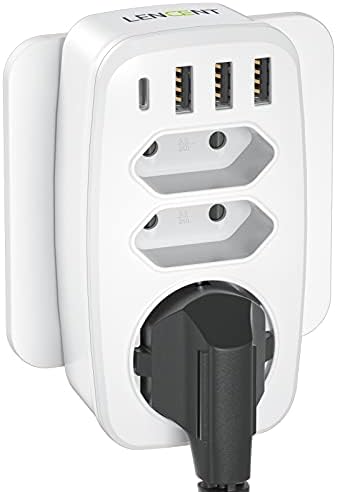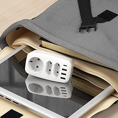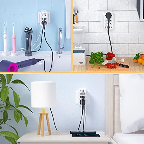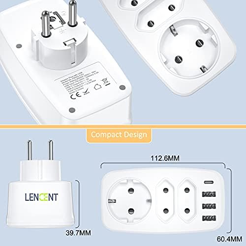 LENCENT USB-wandcontactdoosadapter 7-in-1 meervoudige stekker 3-weg meervoudige stekker dubbele Euro en 1 Schuko-stopcontact 4000W meervoudige stekker met Type-C, 3 USB-laadpoorten