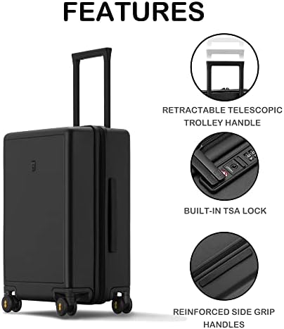 LEVEL8 Koffer Bagage 54.5 cm Cabine koffer PC Materiaal Lichtgewicht Ingebouwd TSA-slot, 8 Spinnerwielen, Handbagage,Hardcase Koffer en Trolley, 20 inch,40L,Zwart
