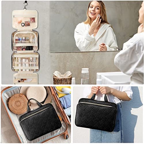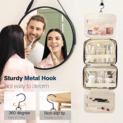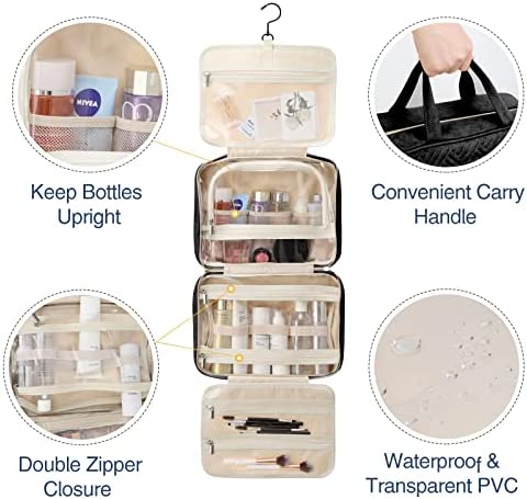 【Easy to Hang and Stay Stable】360-degree swivel non-slip metal hook is sturdy and durable, not easy to deform, providing a variety of hanging options. No need to place the contents of the travel makeup bag on the bathroom counter, simply hang the travel toiletry bag for easy access.