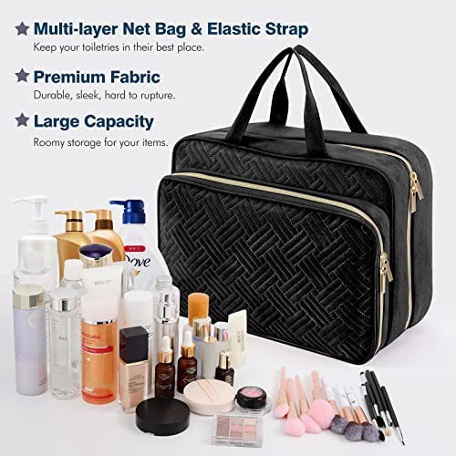 【Versatile Makeup Case】This large storage bag is a toiletry bag for travel/business trips, a makeup organizer for daily use at home, and a nice gift for friends and family. Multiple pouches and elastic bands keep your toiletries neat and organized, facilitating your life.