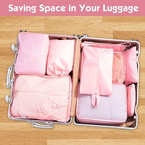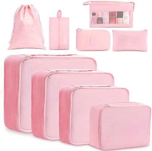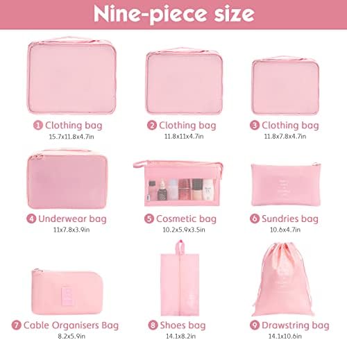 Meowoo Koffer Organizer Packing Cubes, pakzakken, 9-delig, kledingtassen, verpakkingskubus, bagageopslag, tassen (roze 9 stuks)