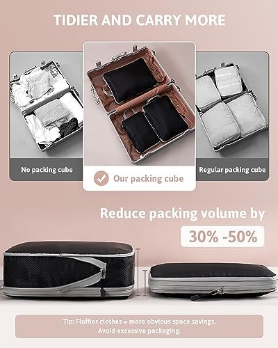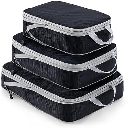 Meowoo Packing Cubes Compressiekoffer, organizer, pakzakken, kledingtassen, verpakkingskubus, bagageopslag, tassen (zwart, 3 stuks)