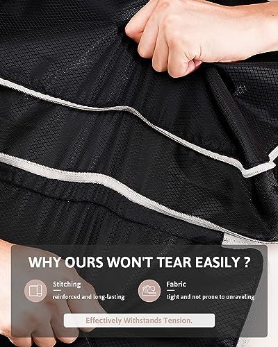 Waterdicht materiaal: gemaakt van waterdichte coating en waterdicht polyesternet, tweeweg-ritssluitingen en naden. Zeer duurzaam, waterdicht, stofdicht, met ademend gaasdoek om de kleding altijd schoon te houden.