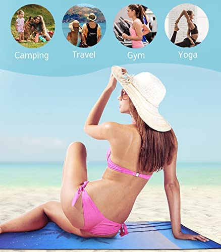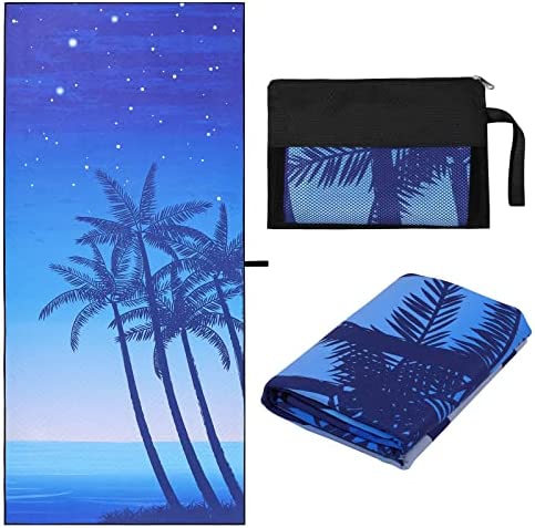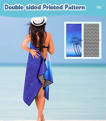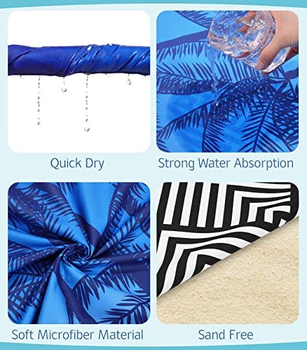 MoKo Beach Towel for Travel, Quick Drying Blanket Sand Free Towel Double Sided Printed Lightweight Beach Mat Accessories with Mesh Storage Bag for Pool, Picnic, Camping, Gym, Yoga, Coconut Trees