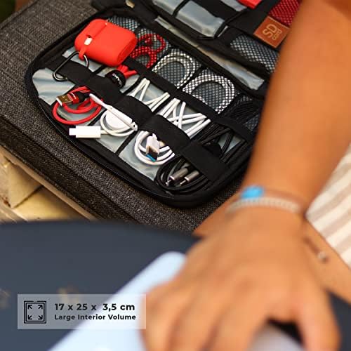 Oplaadkabel-organizer met robuuste en betrouwbare stof, handgrepen met hoogwaardige en duurzame type 8-ritssluiting voor je reisgadget. 100% polyester, robuuste stof