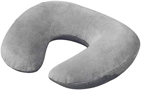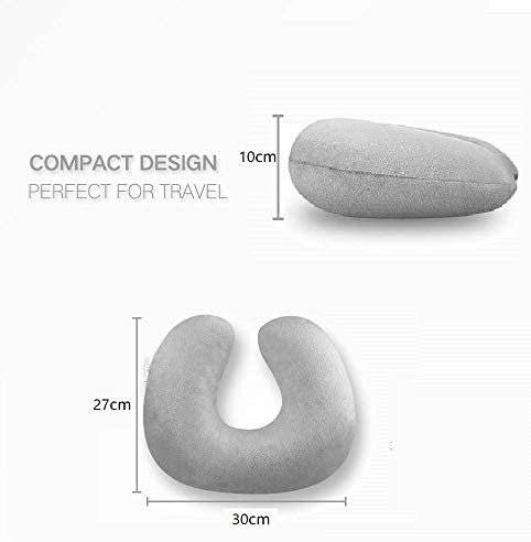 Opblaasbaar nekkussen, reiskussen, compact draagbaar hoofd- en neksteunkussen tijdens de vlucht, klein hoofdsteunkussen in U-vorm, grijs, 30*27*10cm