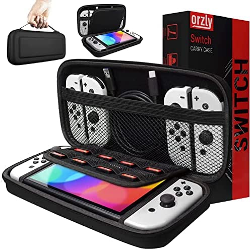 Orzly draagtas compatibel met Nintendo Switch en nieuwe Switch OLED console – zwart Beschermende harde draagbare reisdraagtas Shell-etui met vakken voor accessoires en games
