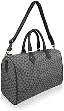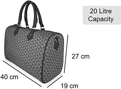 Quenchy London Travel Holdalls Weekend-Overnachttassen – Medium Size Holiday Duffle Bag – Ideale Dames Gym Training Kit – Handbagage Cabine Bagage QL216M, Zwart Grijs Geo, Medium, Reistas