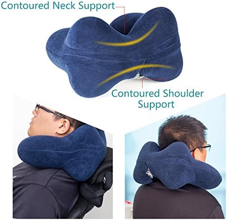 Reis Accessoire draagbaar U-vormig opblaasbaar kussen vliegtuigkussen nekkussen LUZWAY gebogen ontwerp pas de nek Vakantie Man Vrouw (blauw05)