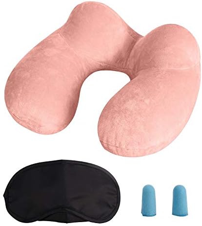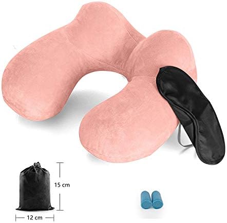 Reis Accessoire draagbaar U-vormig opblaasbaar kussen vliegtuigkussen nekkussen LUZWAY gebogen ontwerp pas de nek Vakantie Man Vrouw (roze01)