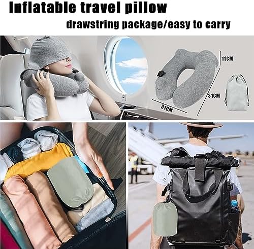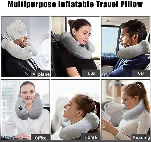 Reiskussen Opblaasbaar Nekkussen, Reisnekkussen Opblaasbaar Voor op Reis, Vliegtuig, Auto, Trein, Bank en Thuis (Grijs)