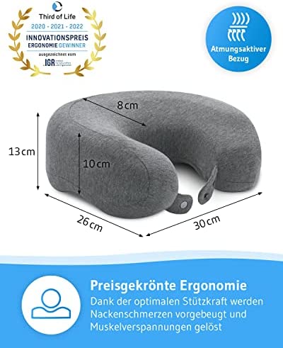 ⮩ ERGONOMISCH EN HYPOALLERGEEN – Ideaal om zittend te slapen in het geval dat u niet kunt liggen, het kussen voorkomt nekpijn die zo vaak voorkomt tijdens het reizen. Het schuim is ook huisstofmijtbestendig: perfect voor mensen met allergieën en/of astma