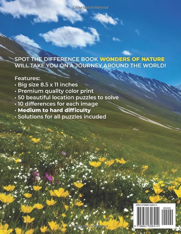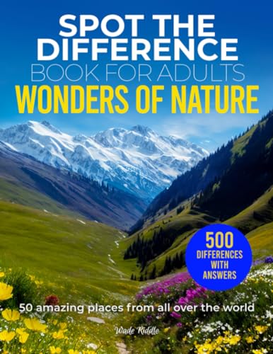 Spot the Difference Book for Adults Wonders of Nature: 50 Picture Puzzles Activity of Beautiful Travel Destinations, Medium to Hard Difficulty, 10 Hidden Changes per Image to Find