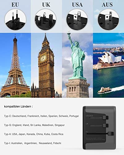 Travel Companion: De afmetingen van deze universele voedingsadapter zijn 7,09 x 4,98 x 5,28 cm. Dankzij het compacte en lichtgewicht ontwerp is deze universele USB-stekkeradapter gemakkelijk mee te nemen in een handtas als u buitenshuis bent.De beste reisgenoot.