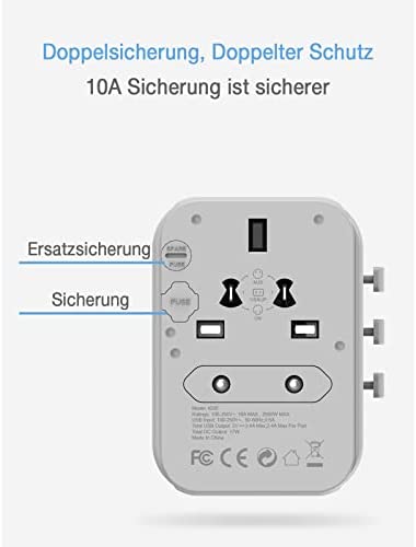 Veiligheidscertificaat: de Tesan reisstekkeradapter stroomadapter heeft een CE, RoHS, ICE certificering en is gecontroleerd. Onze wereldstekker reisadapter bestaat uit eersteklas hittebestendige ABS-kunststof, hittebestendig tot 750 graden, 10 A dubbele beveiliging tegen overbelasting, veiligheidsramen, steeksluitsysteem voor 100% veiligheid, bewaak je reis beter.