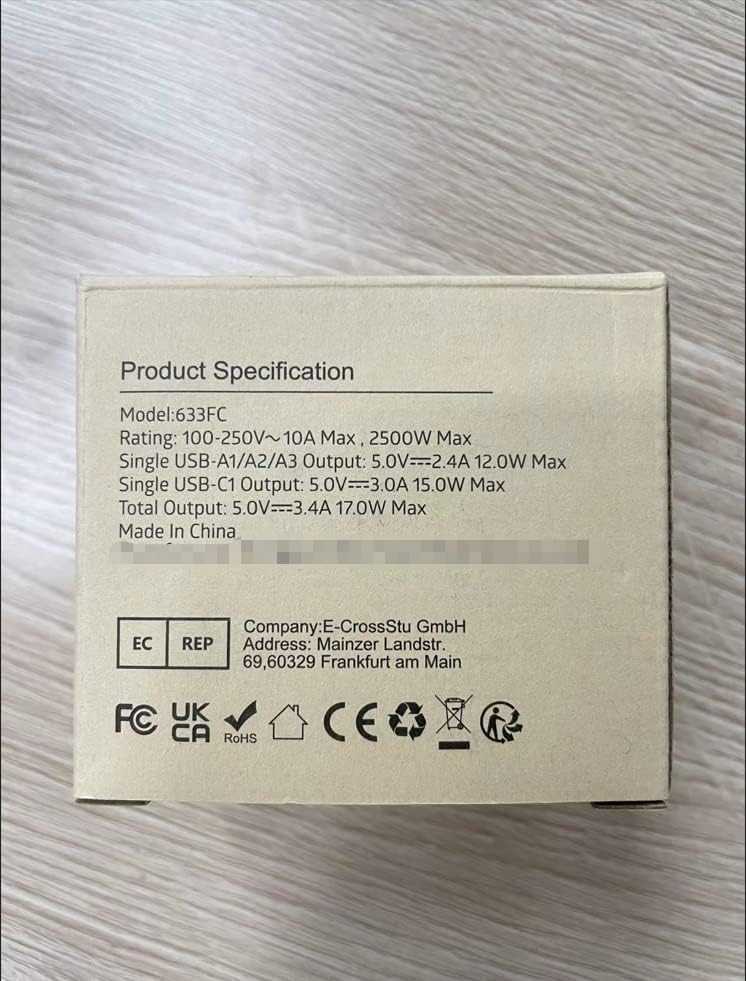 3 USB-poorten en 1 USB-C-poorten. Ingangsspanning: 100V-250V AC, 50 / 60HzMaximum belasting: 10 ANNNPOWER: 110V-1100W / 250V-2500W. Verwisselbare zekering: T10A (inclusief reservezekering)USB-A-uitgang: 5VDC / elke USB 2.4A (max)USB-C-uitgang: 5VDC / 3A (Max)Opmerking: Deze reisadapter zet geen spanning om.