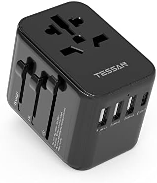 TESSAN Reisadapter Wereldwijd, met 3USB, 1USB C en 1AC Stopcontact, Universele Adapter voor Duitsland VS Engeland Italië Australië, zwart