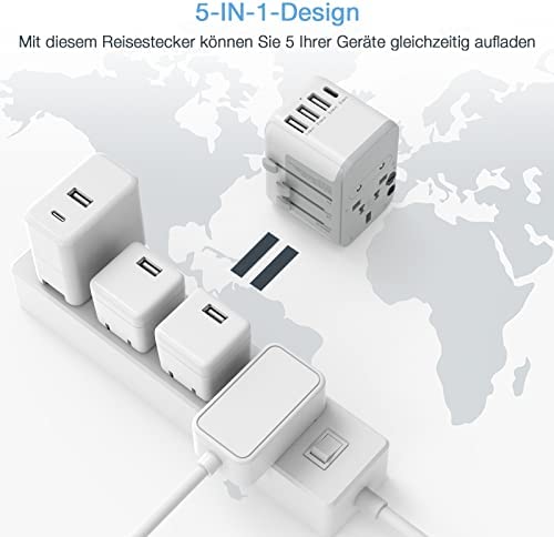 Compact formaat: met een afmeting van 7,15 x 5,5 x 5,35 cm is deze internationale voedingsadapter compact en draagbaar. Het all-in-one toegangsconcept voldoet aan de uiteenlopende eisen van uw reis en bespaart u veel bagageruimte zonder dat u extra adapters of stopcontacten hoeft mee te nemen. Het is ook een USB-thuisoplader, zelfs als u niet onderweg bent.