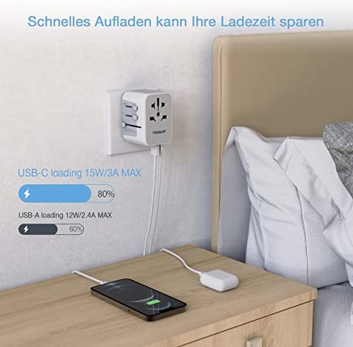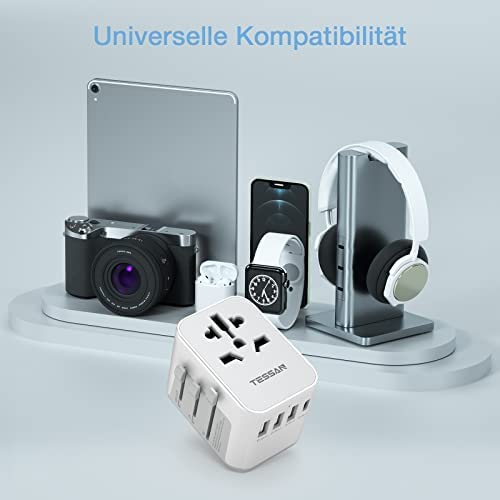 Tessan Universal Travel Adapter Travel Socket Adapter wereldwijd met 3 USB en 1 USB C