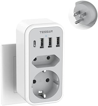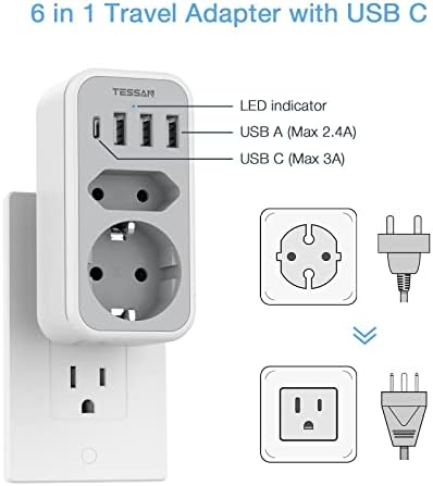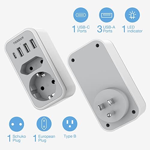 TESSAN Reisstekker USA met 3USB 1USB C, Reisstekker EU naar USA 15W 3A, EU naar USA Adapter Plug met 2AC, Reisadapter Type B Stekker Amerika voor Canada Thailand Mexico USA Travel Adapter