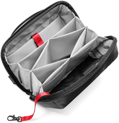 Hoogwaardig materiaal: Gemaakt van waterafstotend milieuvriendelijk polyesterweefsel, duurzaam en stevig om je technische accessoires te beschermen tegen waterspatten. Een centrale wrap-around YKK Aquaguard rits glijdt soepel; Het is een van de weinige tech organizer tassen die grootte en bruikbaarheid combineren en tegelijkertijd veelzijdig, stijlvol en premium kwaliteit blijven